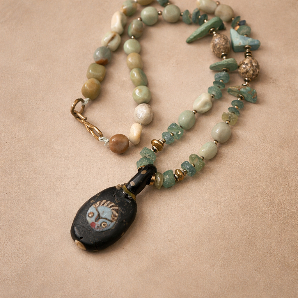 Kolye Ucu: Eskitilmiş Cam Üzeri Etnik Kuş Sembolü