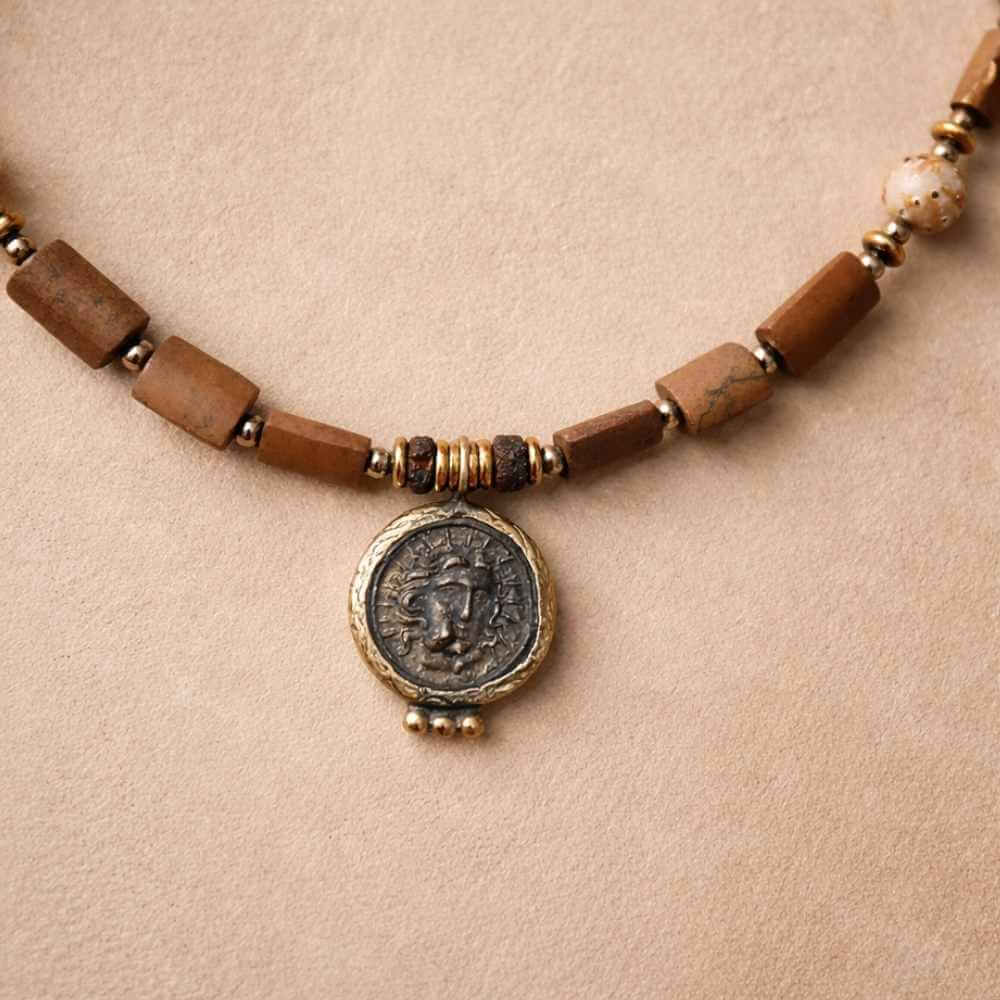Mercanın doğal ve sıcak dokusu, eskitme incinin zamansız ışıltısı ve hematitin dengeli enerjisiyle birleşerek karakterli bir bütünlük sunar. Pirinç detayların modern parıltısı, antik madolyon görünümlü kolye ucuyla birleşerek güçlü bir estetik oluşturur. SEY DESIGN’ın özgün el işçiliğini yansıtan bu tasarım, hem doğal taşların ruhunu taşıyan hem de antik esintilerle modern şıklığı buluşturan özel bir aksesuardır.Mercan Madolyon Kolye, mercan ve hematit doğal taş kombinasyonunu antik madolyon vurgusuyla birleştiren el yapımı tasarım bir kolyedir.