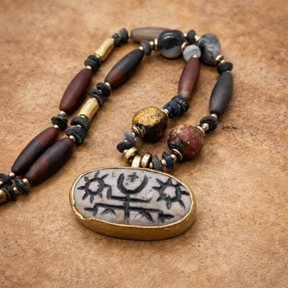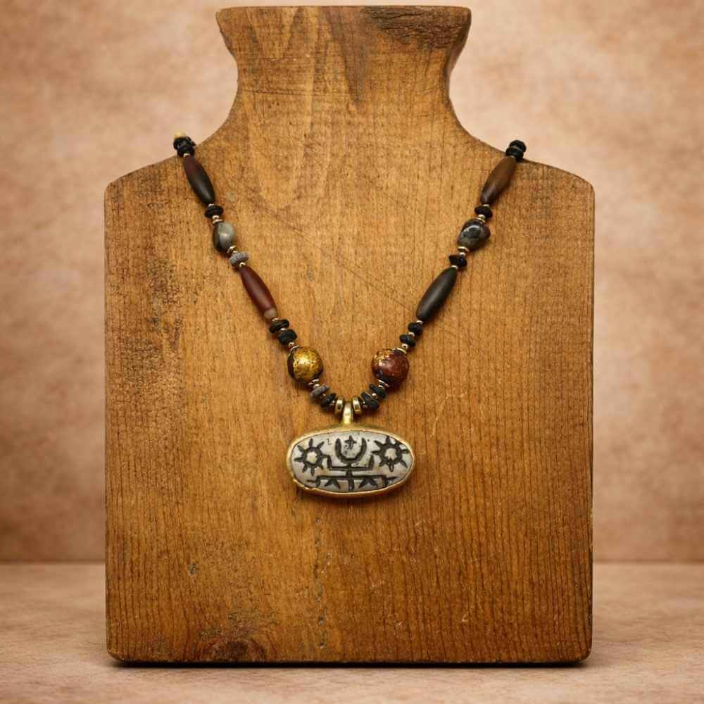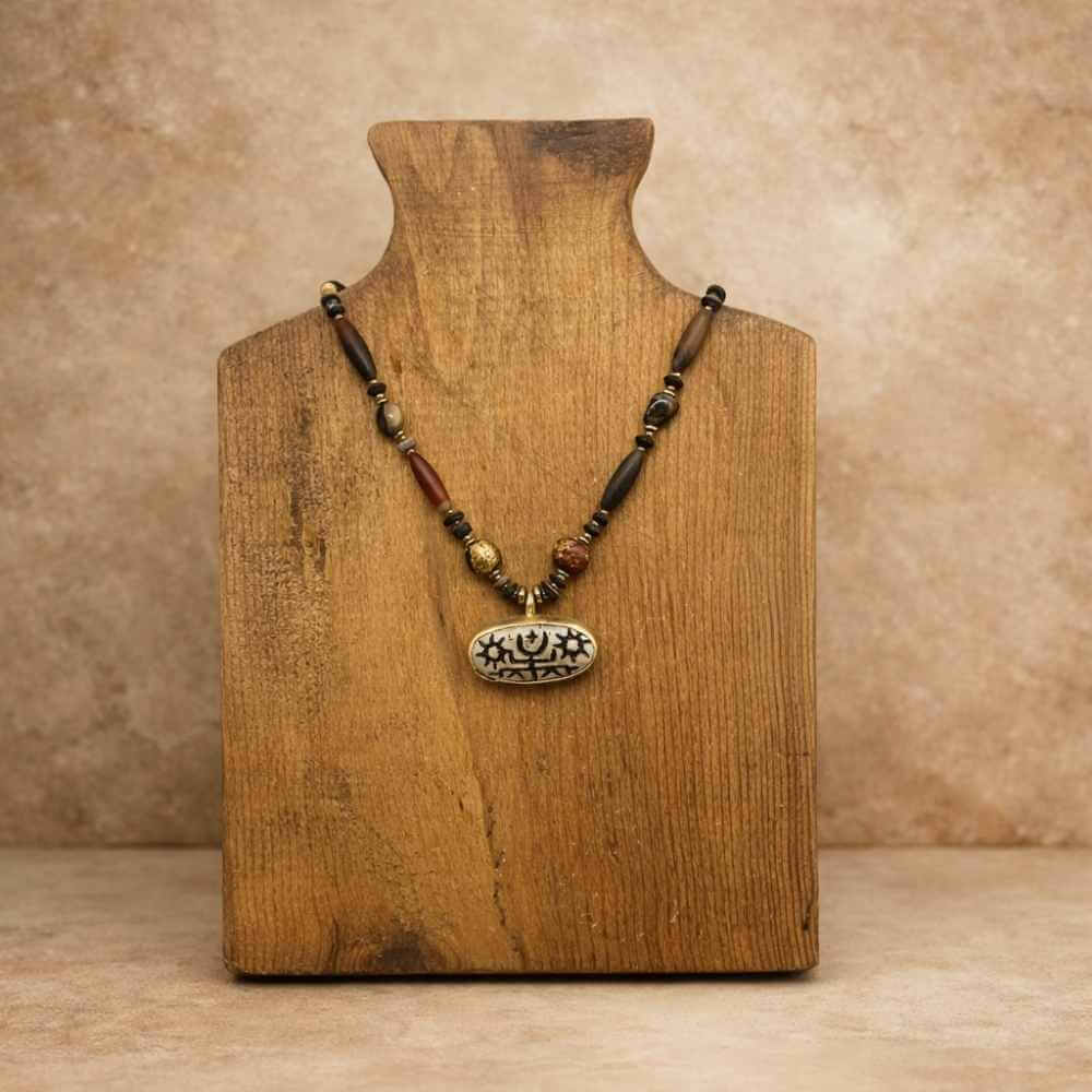 Doğal akik taşı kullanılarak el işçiliğiyle hazırlanan bu özel kolye, taş oyma ucu ve sade tasarımıyla zamansız bir şıklık sunar. Her bir parça, doğal taşın kendine özgü formu ve renk geçişleri sayesinde benzersizdir.