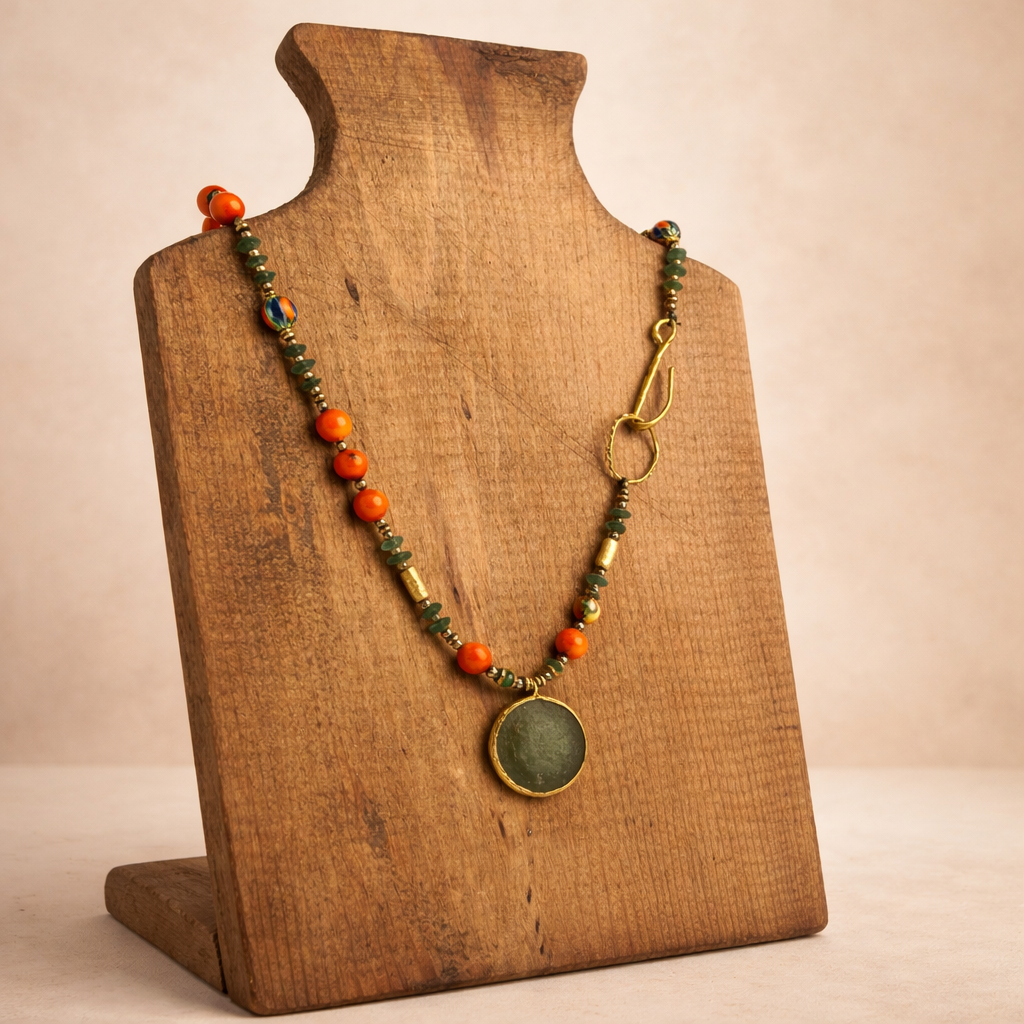 Mercanın sıcak dokusu ile deniz camının doğal saydamlığı bir araya gelerek ferah, akıcı ve sahil esintisi taşıyan zarif bir uyum yaratır. Pirinç üzeri altın kaplama detaylar tasarıma modern bir parlaklık katarken deniz camı kolye ucu, tasarımın merkezinde hafif ve şiirsel bir vurgu oluşturur. SEY DESIGN’ın el işçiliğiyle şekillenen bu özel parça, doğal taşların enerjisini minimalist bir estetikle buluşturarak günlük stile taze, sade ve özgün bir dokunuş ekler.Deniz Nefesi Kolye, mercan ve deniz camı doğal taş birlikteliğini el yapımı tasarım ferahlığıyla sahil ruhuna taşıyan bir kolyedir.