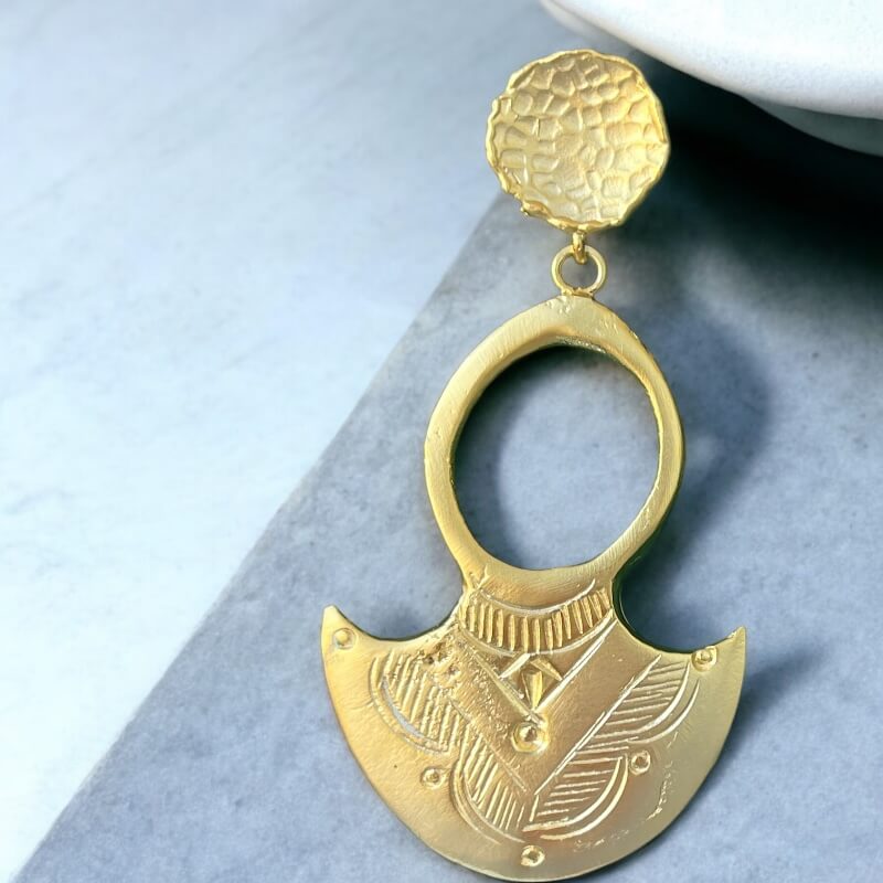 Bilgi : Tuareg Küpe, pirinç üzeri altın kaplama ile şıklığı ve zarafeti bir araya getiriyor. Geleneksel Tuareg desenlerinden ilham alınarak tasarlanan bu eşsiz küpe, modern tasarımıyla dikkat çekerken, kültürel bir dokunuş da sunuyor. Zarif ve özgün bir aksesuar arayanlar için ideal.